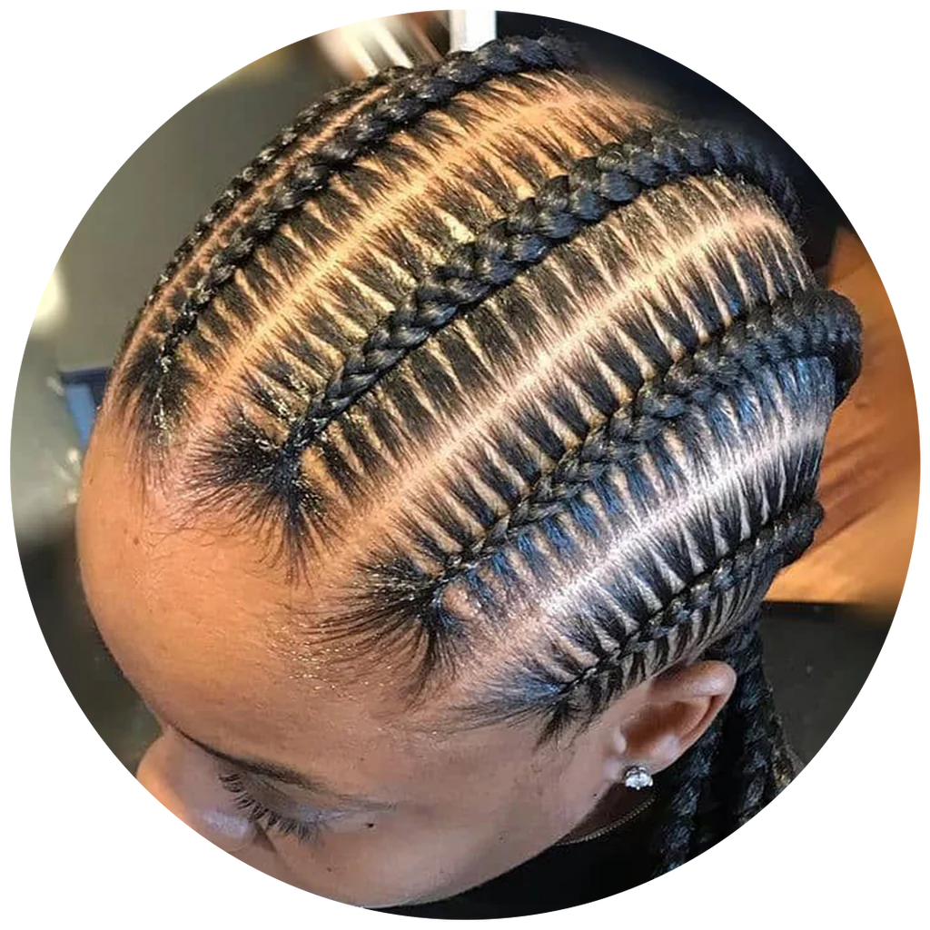 Cornrows are an ancestral style of African braiding where the hair is braided close to the scalp using an upward motion to create continuous, raised rows.